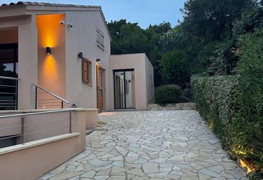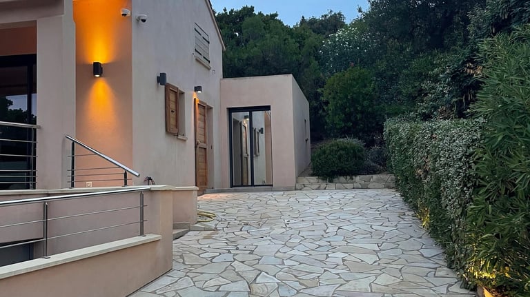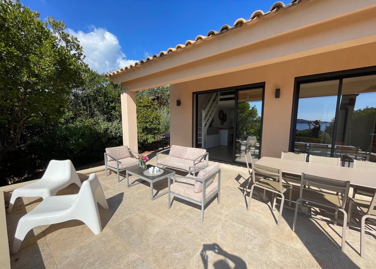 ”Une Villa entièrement rénovée à louer au Sud de la Corse, les pieds dans l'eau, mêlant élégance et intimité.”