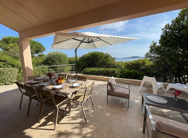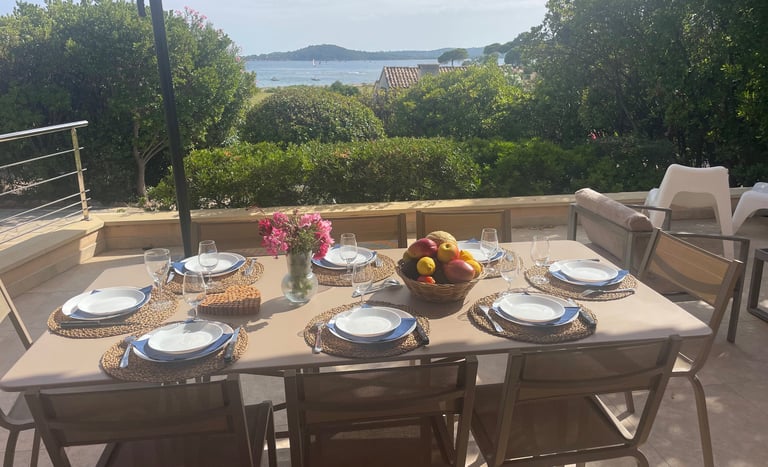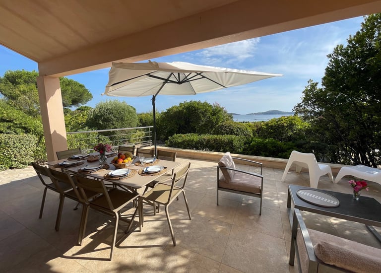 Détendez-vous sur la terrasse en admirant une vue imprenable sur la baie de Pinarello.