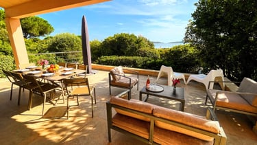 Relax on the terrace and enjoy breathtaking views over the Bay of Pinarello.